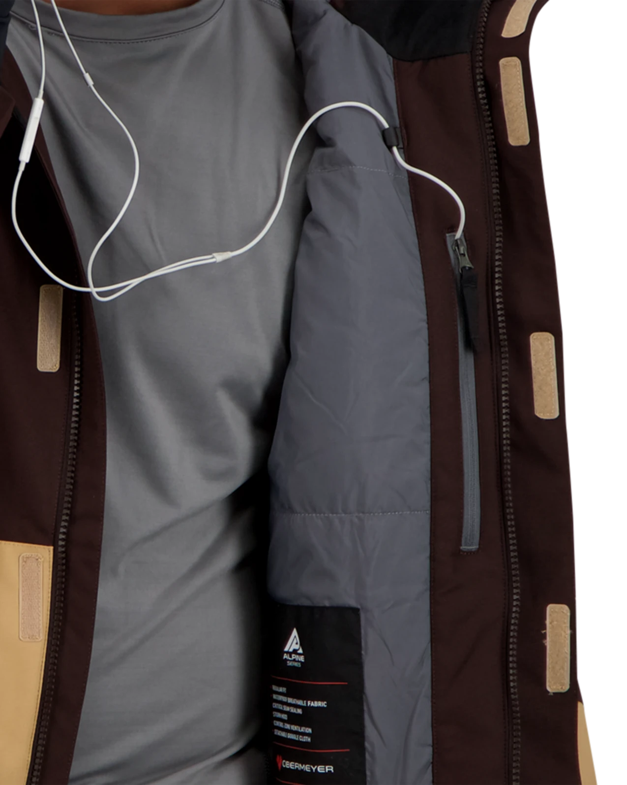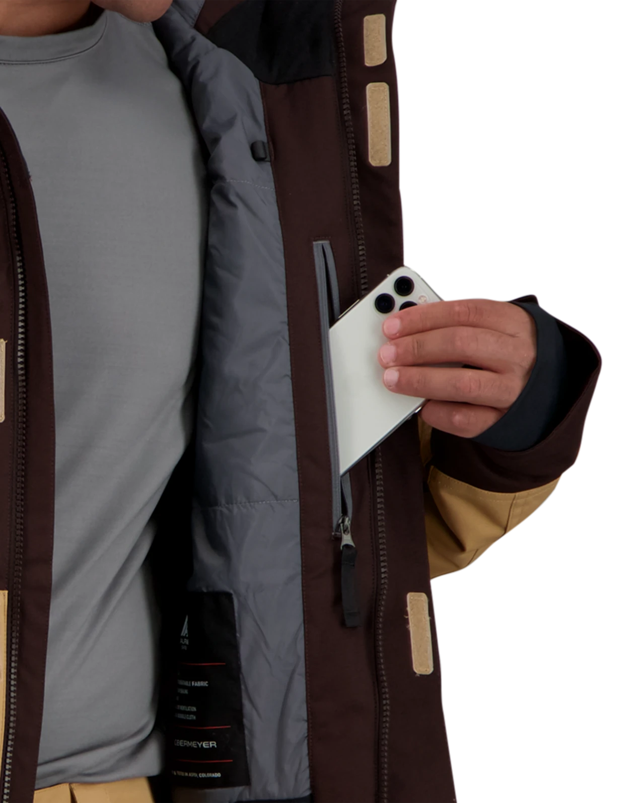 - Zipper chest pocket and handwarmer pockets; zipper pass pocket; electronics and goggle pockets for essential storage