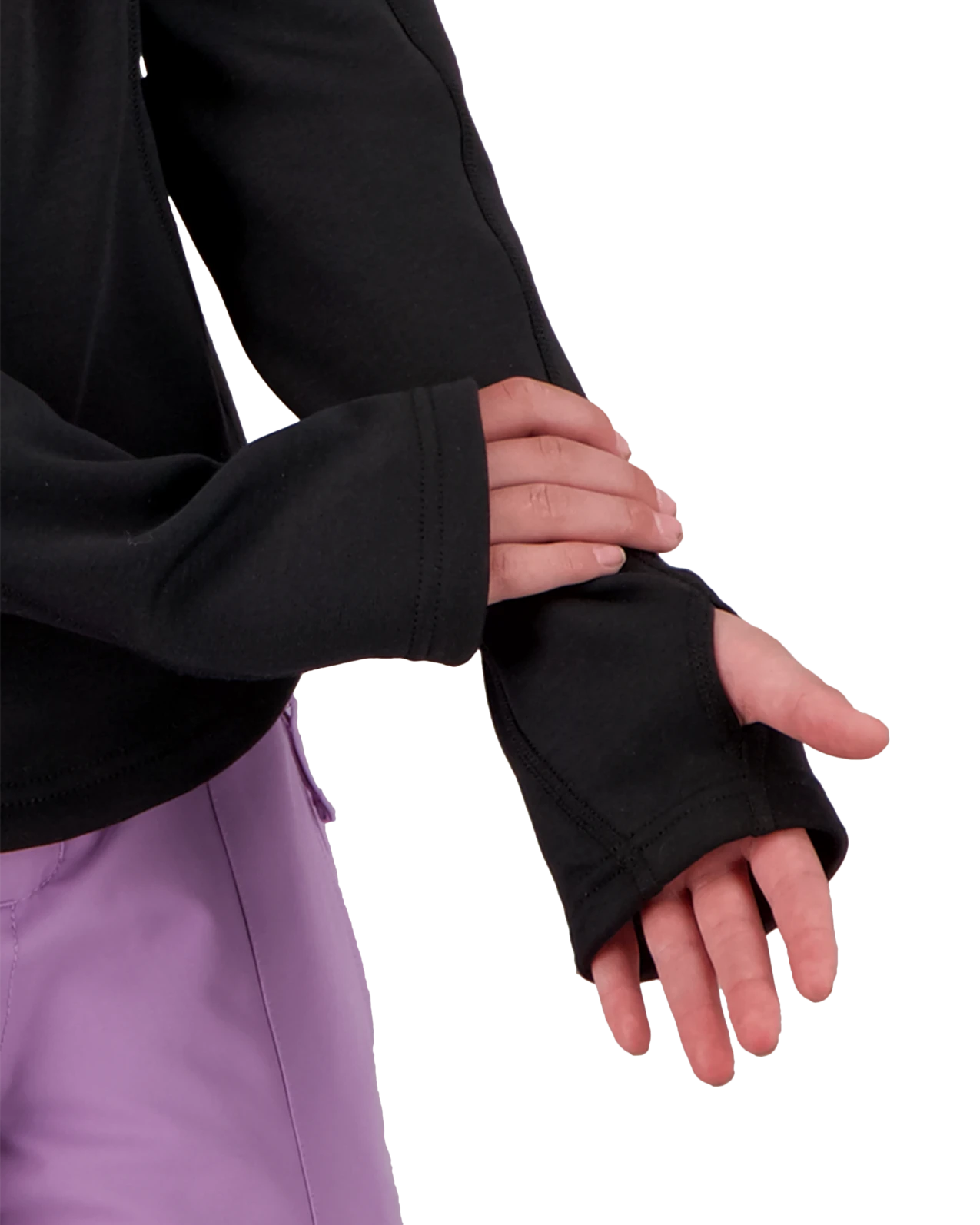 Fitted hoodies are not just as an outer layer but are also becoming quite popular as an underlayer, especially when the active fit allows for layering. Constructed with a polyester stretch blend in a double pique stretch knit. Subtle zippered hand pockets in a kangaroo-style design. Flat seam construction, thumbhole shaped cuffs, and shaped drop hem.